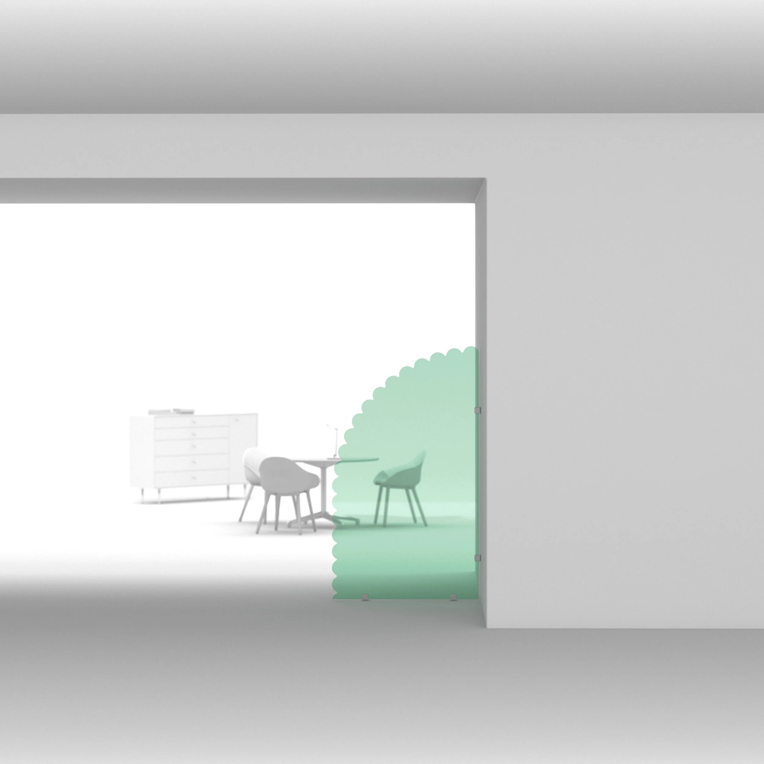 Laminated low-iron clear glass, 7/16” finished thickness w/ satin smooth edges