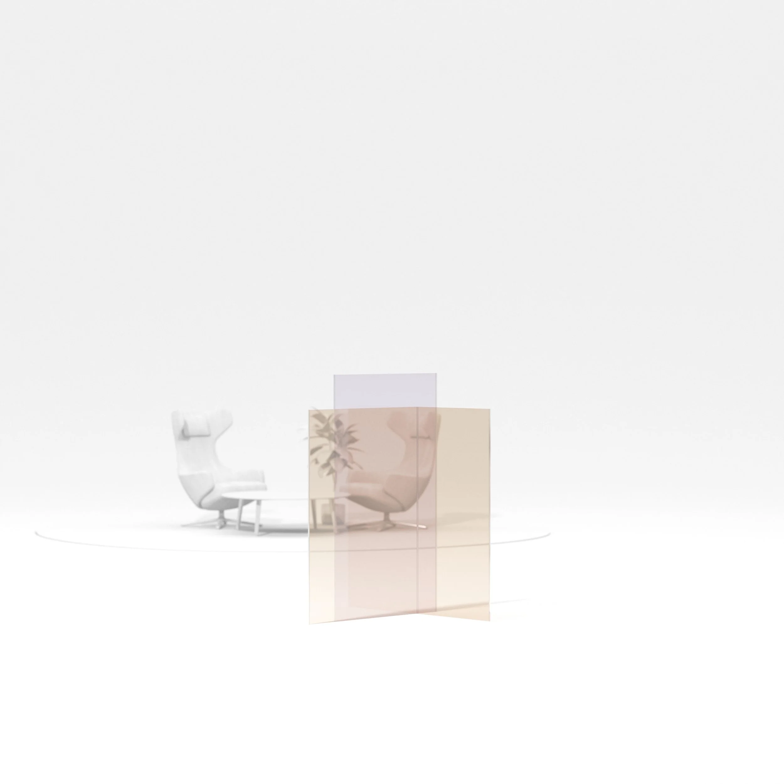 Laminated low-iron clear glass, 9/16” finished thickness w/ satin smooth edges